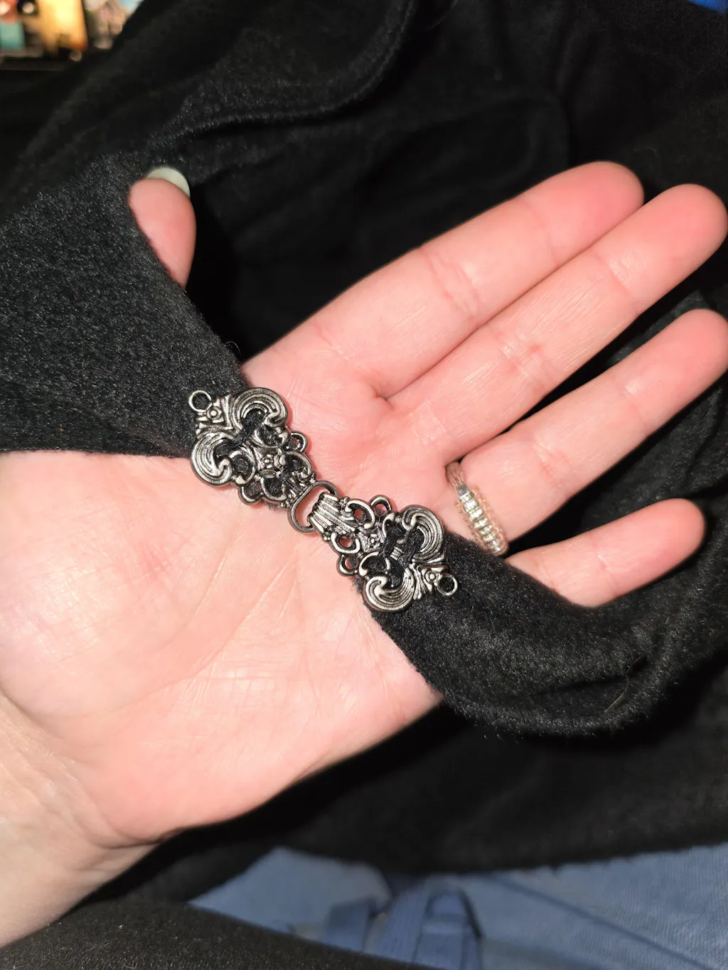 Each cloak is made from fleece which is hand-cut and sewn by me! I wanted to offer a cute yet stylish gothic cottagecore accessory while being comfortable, hand-made, and affordable. The cloak attaches at the front with a stylish hook and eye closure for a sure stay but can be worn around the shoulders like a shawl. Does NOT come with cool vampire powers sadly.