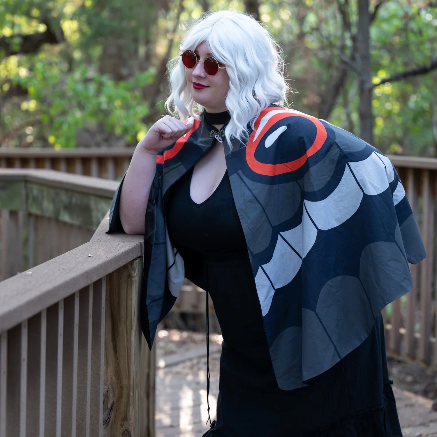 Each cloak is made from printed poly-cotton fabric and sleek satin lining! These wings are perfect for any Ren Faire, Mothman costumes, or if you really want to be your local cryptid. They have a decorative closure in the front which can be unclasped easily to wear the wings like a shawl. Don’t blame me if you wind up in the local papers when you wear my wings!