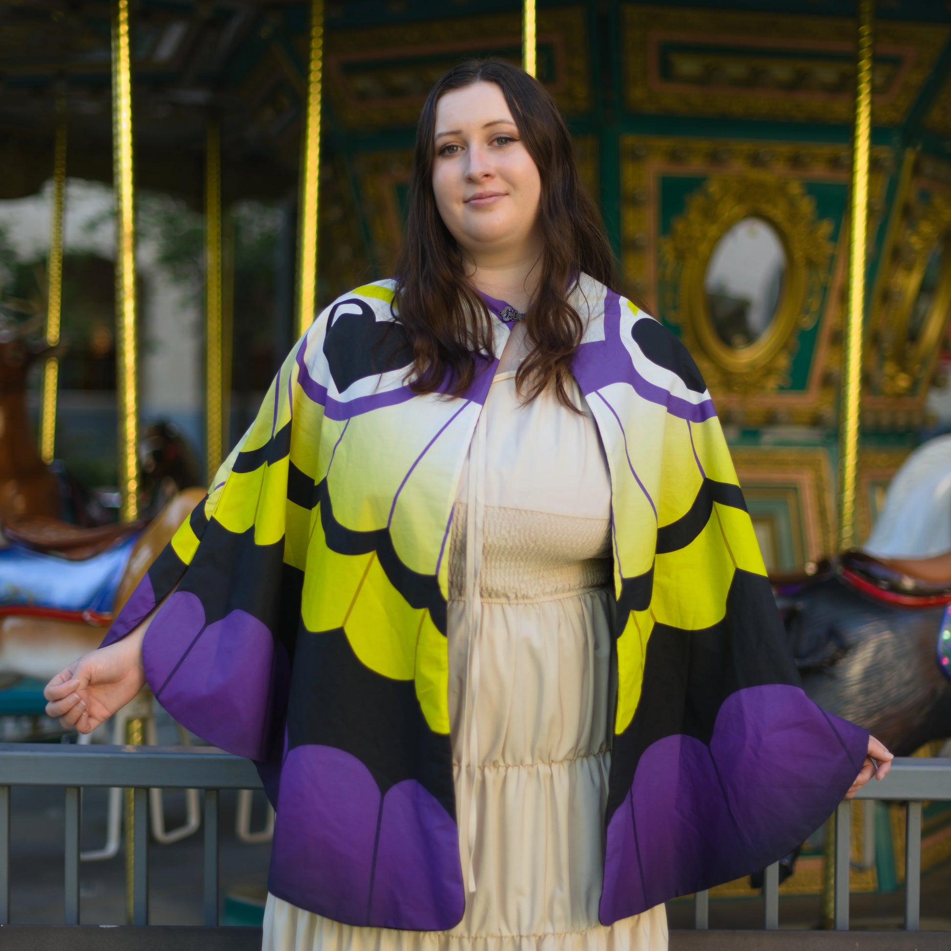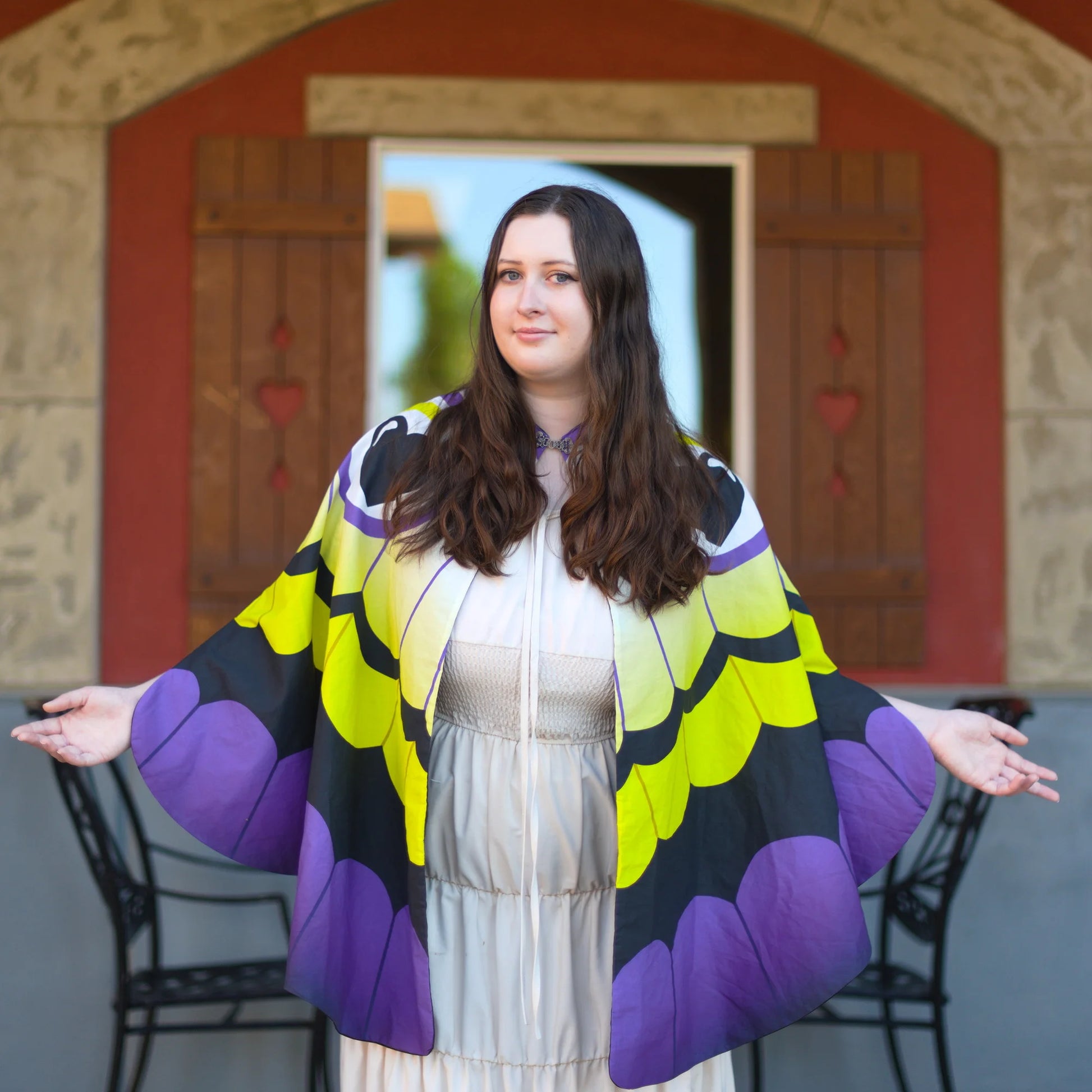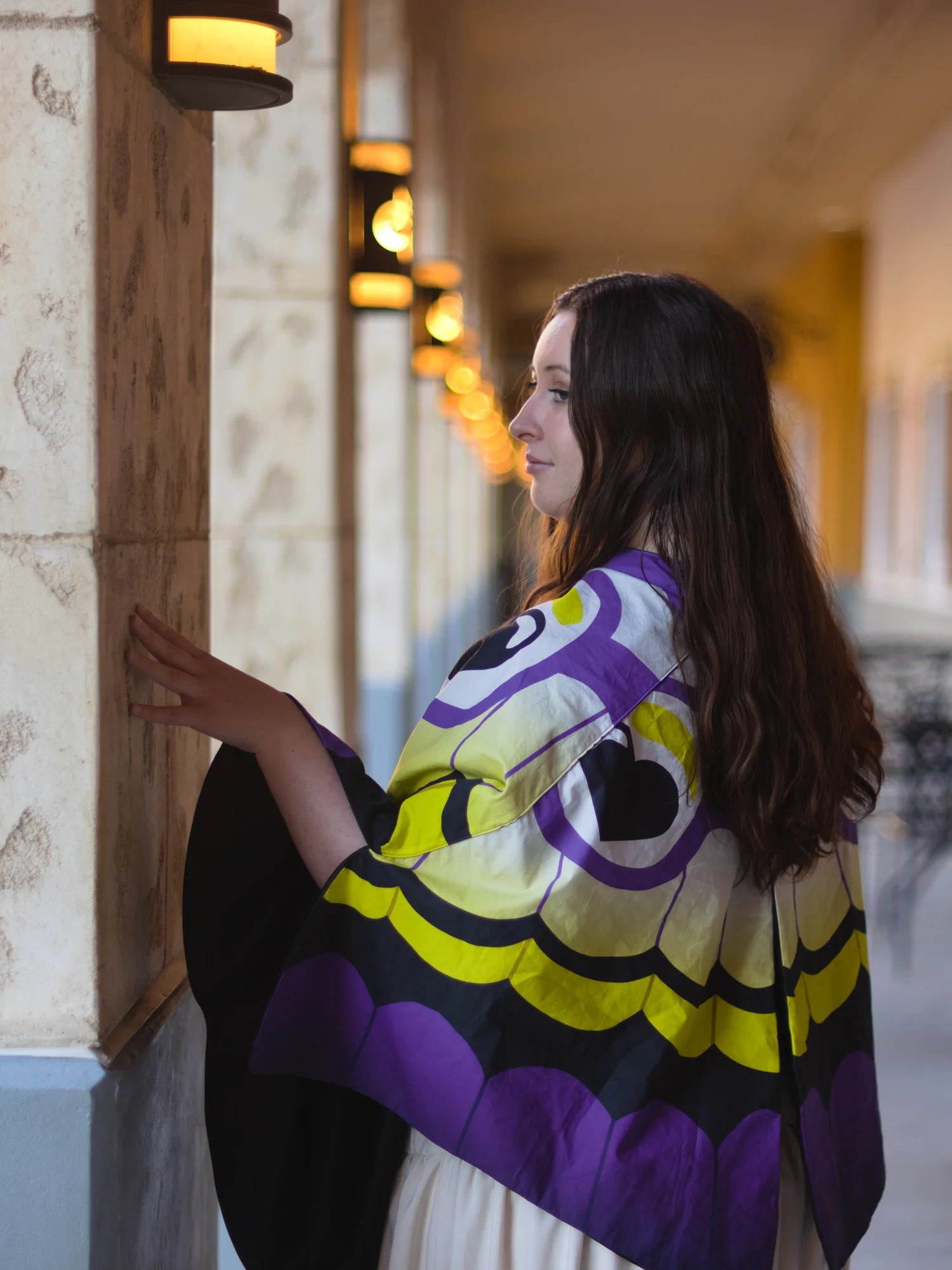 With lightweight and bright printed cotton on top and silk smooth satin lining on the inside, these wings are perfect for the summer months (moths?). With a unique closure in the front, these wings will stay on whether you are dressing up for fun, attending events, or just enjoying the vibe at home.