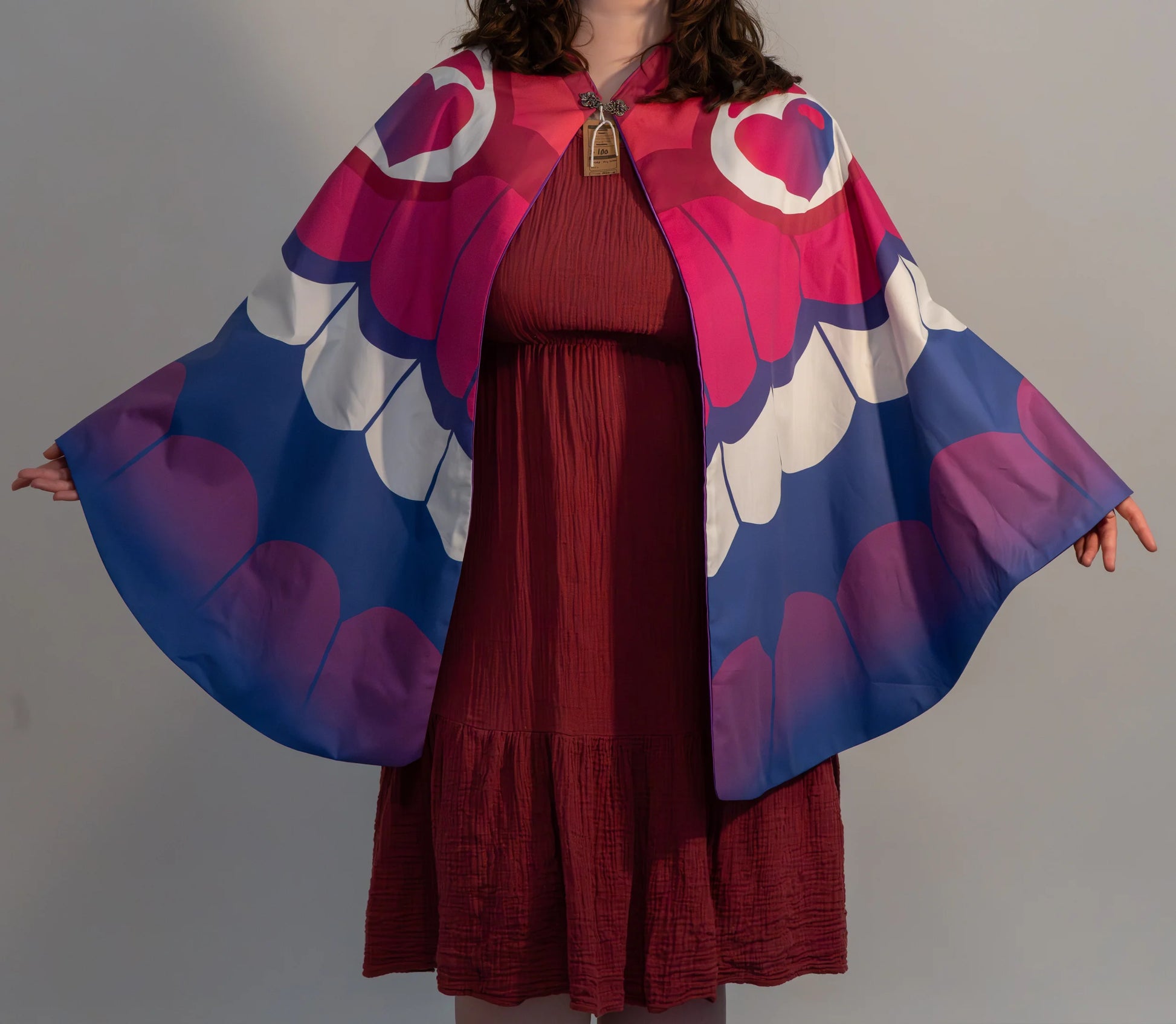 Our Pride Moth Wings are designed and sewn in studio, with pride of course! Being who you are in a stylish and fun way is one of our main philosophies here at Enchanted Moth Hollow, and what better way to do that than with some moth wings!